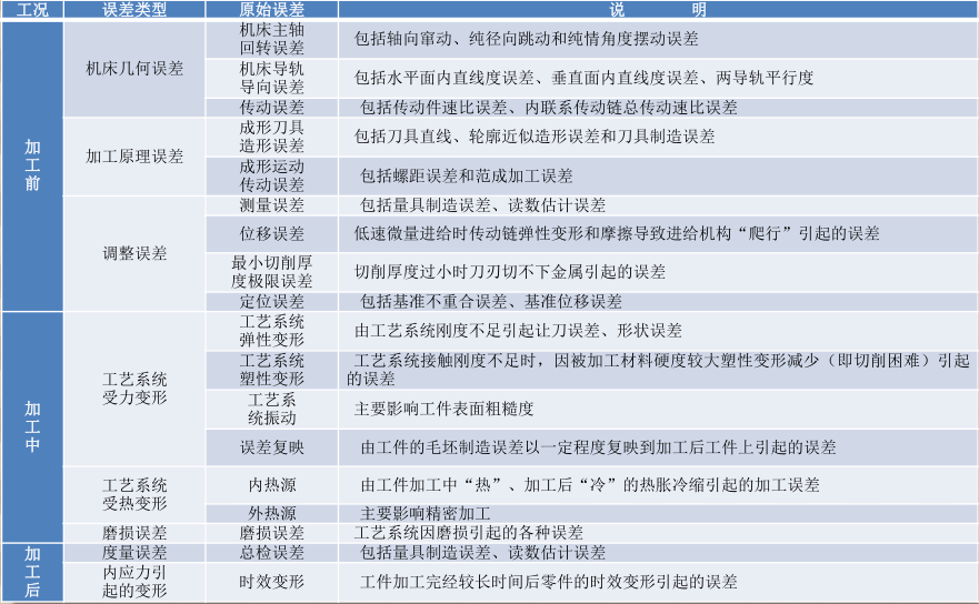 工艺系统原始误差的类型