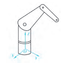 ( 2)关节坐标系关节坐标系用来描述机器人每一个独立关节的运动。如图所示,假设希望将机器人的末端运动到某一个特定的位置,可以每次只运动一个关节,从而把末端引导到目标位置上。在这种情况下,每一个关节单独控制,从而每次只有一个关节运动。由于所有关节的类型(移动型、旋转型、球型)不同,机器人末端的动作也各不相同。例如,如果是旋转关节运动,机器人末端将绕着关节的轴旋转。
