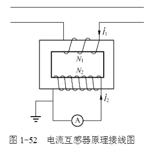 1-52是电流互感器的原理图,它的一次侧绕组匝数很少,有的只有1匝,二次侧绕组匝数很多。它的一次侧与被测电流的电路串联,二次侧接电流表或瓦特表的电流线圈。